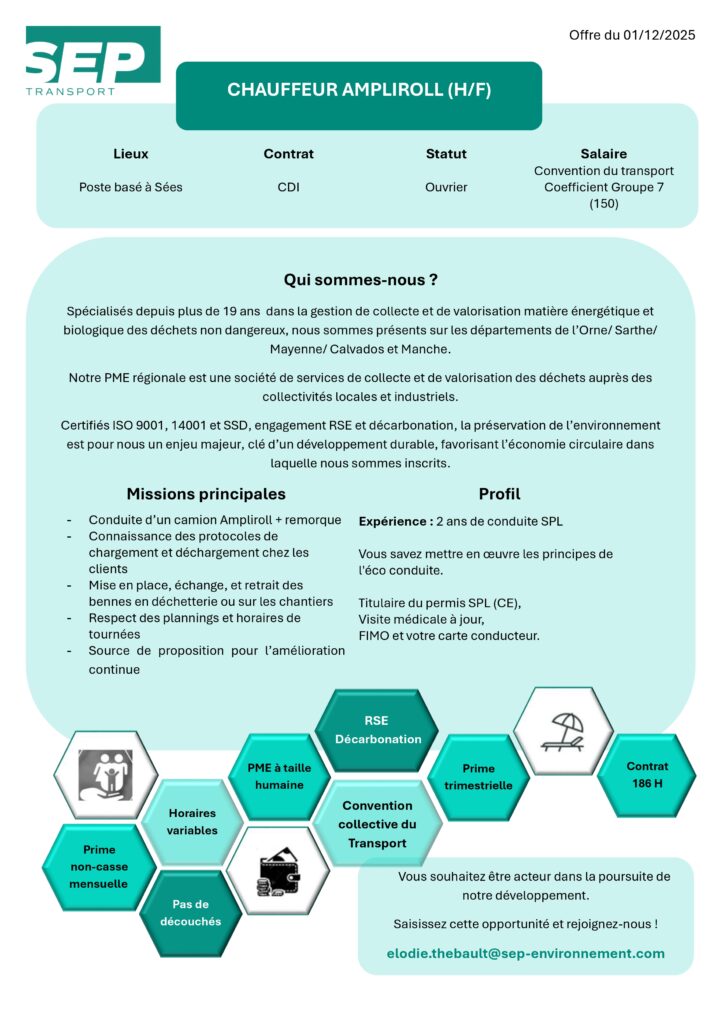 Offre d’emploi – Chauffeur Ampliroll – Sées