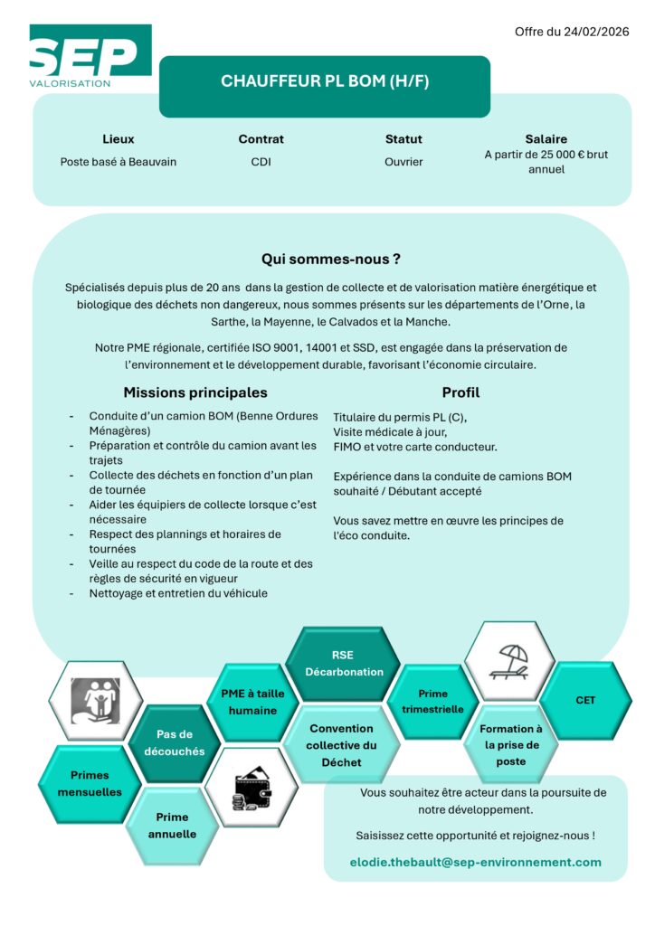 OFFRE D’EMPLOI – Gestionnaire d’exploitation (H/F) – Secteur Alençon- CDI
