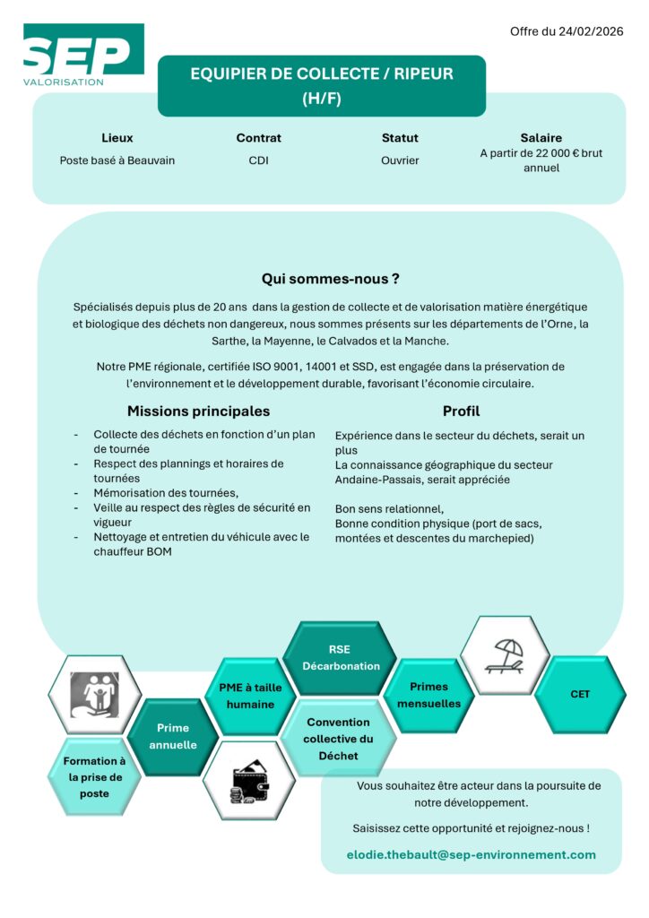 OFFRE D’EMPLOI – Gestionnaire d’exploitation (H/F) – Secteur Alençon- CDI